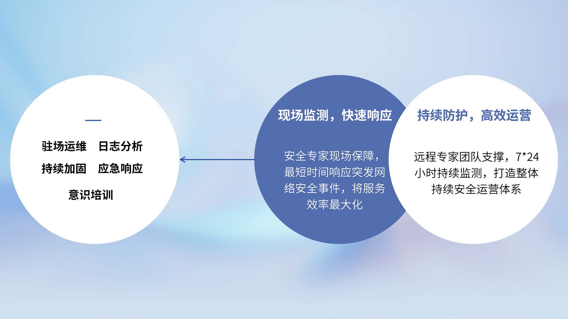 7X24小时持续监测安全事件,保持安全策略有效性,降低资产脆弱性风险,,精准拦截黑客攻击,,,减少被黑客利用的机会,,第一时间遏制,,,,降低损失。。。